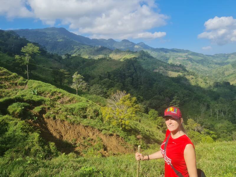 Pietro spreekt alleen Spaans, maar dat mag de pret niet drukken. We lopen een zwaar stuk over de heuvel. Deze bestaat uit een flinke klim, maar we zien prachtige dingen. Zoveel vlinders, vogels, zwarte eekhoorn en uitzichten die zo op een ansichtkaart zouden kunnen staan. We lopen uren door de natuur die ondanks dat het de jungle is zo divers is Van smalle paadjes, weiland naar watervallen en riviertjes. Ik ben een gelukkig persoon, want dit is alles wat ik mij maar wensen kan.