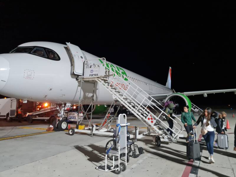 Helaas de vlucht naar Los Cabos heeft ook vertraging en om 20:30 uur gaat de vlucht. We landen om 23:10 uur. De taxi die ons op zou pikken, is er helaas niet. Na 20 minuten bestellen we een taxi en voor 1200 Mexicaanse pesa, die het hotel overigens betaald, gaan we richting het hotel. Om 23.45 uur check ik in bij het Hampton Inn hotel na een douche kan ik eindelijk gaan slapen. De dag was lang!!
