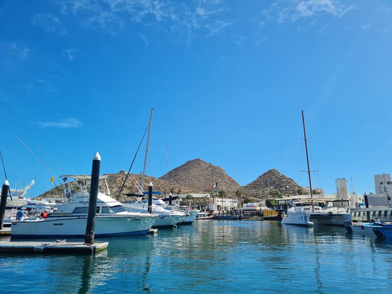 De chauffeur bericht met vertraging. Dit kost zeker 30 minuten, maar de Shuttlebus brengt ons naar San Cabos. We lopen door de haven en gaan met Caboexpedicions op zoek, al varende naar de walvissen. We hebben een kleine twee uur op het water en zien op afstand walvissen, zeeleeuwen en heel veel dolfijnen.
