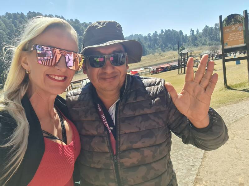Om 09:00 uur gaan we met de taxi en gids naar de monarch vlinders. De rit duurt 3 uur, inclusief een korte stop bij de supermarkt. We zien 5 vulkanen, waarvan één rookt. We rijden via Toluca via de 134 naar onze bestemming.