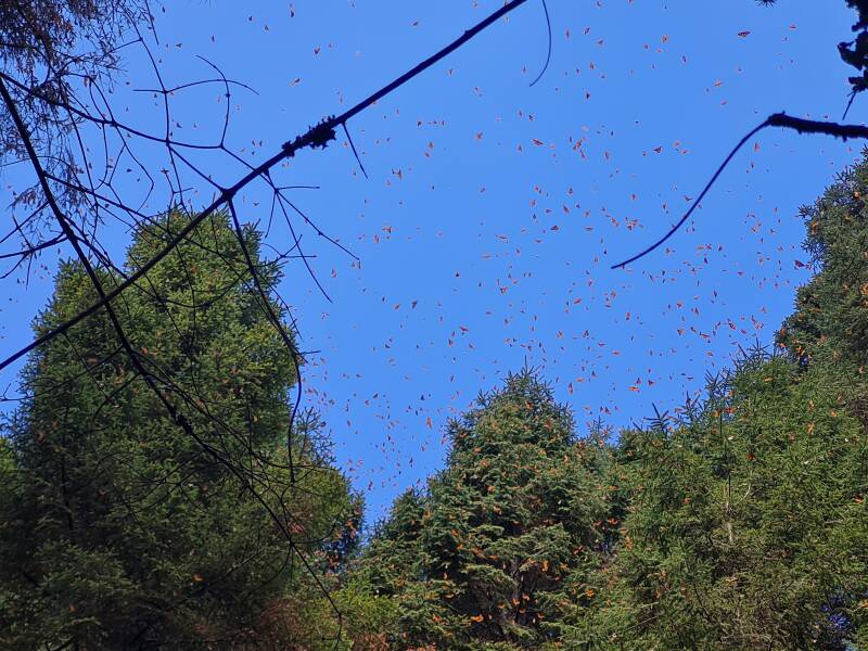 We komen aan in santurio de la mariposa monarca- piedra herrada. Het is niet druk. We krijgen een gids aangewezen en kunnen zelfs ter paard omhoog naar de vlinders. Ik kies ervoor om ter voet te gaan. Het is een klim van circa 2,5 km. Het is het allemaal waard. Eenmaal aangekomen bij de vlinders raak ik geëmotioneerd. Wat mooi en overweldigend. Het zijn duizenden vlinders bij elkaar. Ik heb nog nooit zoiets gezien en kan uren blijven kijken. Het is zo mooi. Onvoorstelbaar hoeveel vlinders. Het geluid dat de duizenden vlinders maken. Op de terugweg naar beneden zie ik nog een prachtige kolibrie zingen. Mijn dag kan niet meer stuk.