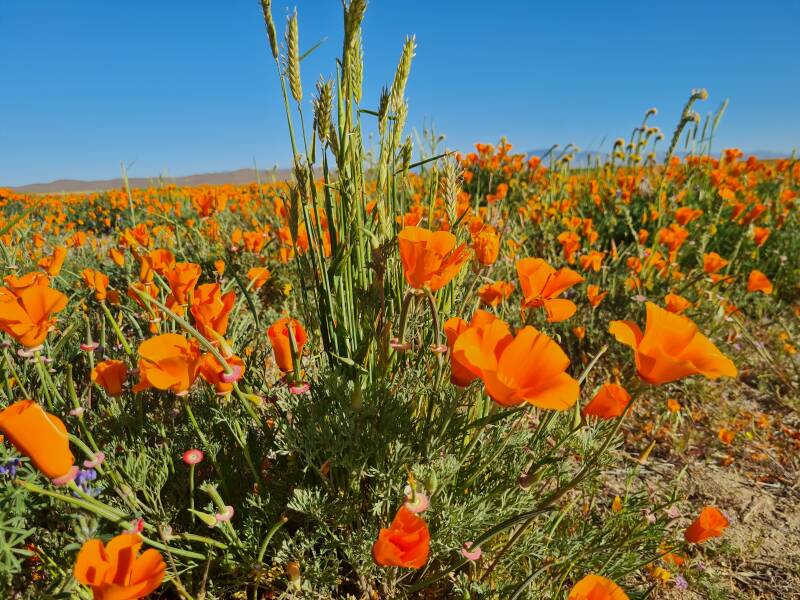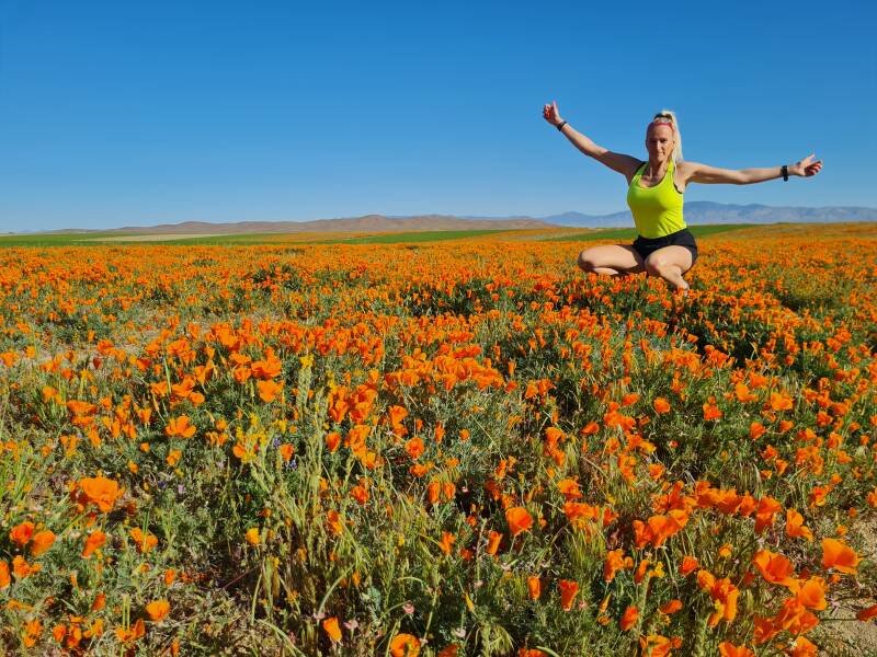 Ik besluit toch te gaan hardlopen door de Valley en maak een ronde van 6 km. Helaas zijn alle beloofde oranje bloemen uitgebloeid. Toch een mooie zes kilometer gelopen. Op de terugweg stoppen we bij prachtige velden met de oranje bloemen die steeds meer open gaan staan door de warmte.