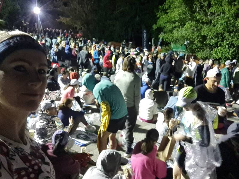 Aangekomen in het startgebied is het al enorm druk, maar wel te overzien. Mensen zijn relaxed, zitten en staan een beetje of zoeken wat te eten of drinken. Een overvloed aan dixies zorgen ervoor dat mensen vrijwel niet in de lijn hoeven te staan. Zelf ben ik ook blij nog even goed gebruik te mogen maken van de dixie! Je kunt het maar kwijt zijn😅🙈