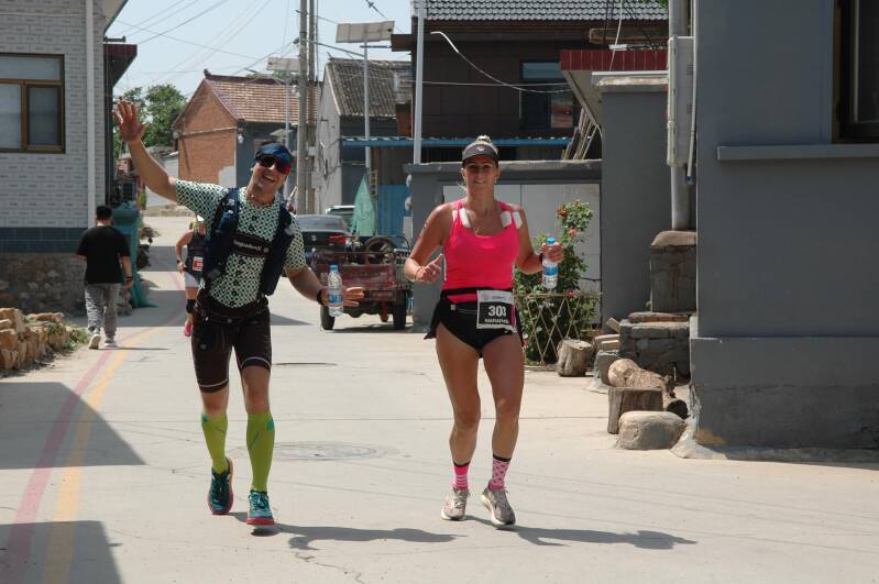 Via het dorpje Xiaying Village loop ik naar het dorp Dongjiafen Village. De mensen zijn super vriendelijk en moedigen ons ook aan. Ze genieten er zichtbaar van.