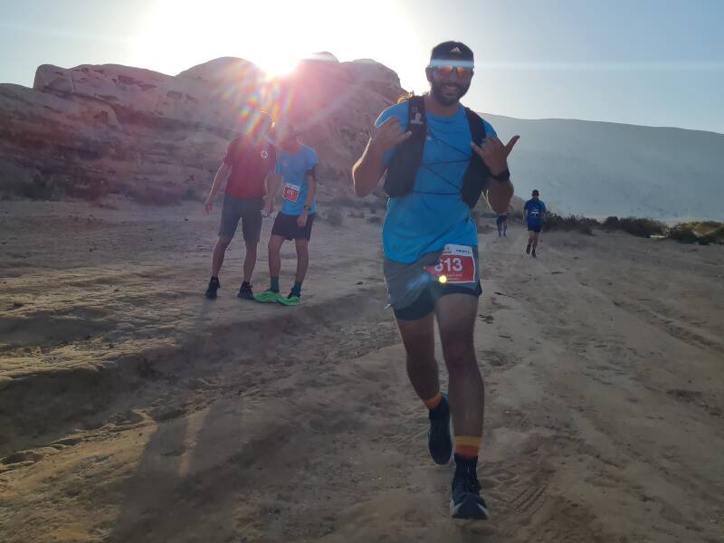 We hebben een plan, maar het is flink door werken. De uren vliegen voorbij. Van de korte route, naar de lange loop, van little Petra naar het hoogste punt en terug naar de woestijn. Dit stuk is stressig, lastig te rijden en wetende dat het stuk wat ik moet na lopen ook niet makkelijk is. Ik ben op tijd terug voor mijn positie bij de dokter in de woestijn. Het punt waarbij de halve en hele marathon lopers zich de eerste keer scheiden. De runners zijn enthousiast en na een paar uur kan ik de route gedeeltelijk swepen en opruimen. De rest van de middag rij ik voornamelijk op de route om te kijken of iedereen ok is en om runners die niet ok zijn terug te brengen naar de finish. zeven uur na de start, sluit de marathon en kan het opruimen beginnen. Het is een lange en warme dag, maar ik geniet.